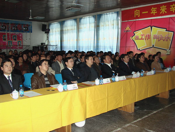 在開工動員大會上,到場員工首先觀看了公司上市專題片,接著公司總經(jīng)理常文玖作了動員講話,公司工會主席周維軍宣讀了公司黨委、公司工會、公司團委倡議書,由總經(jīng)理常文玖與公司機關(guān)各部室負責人簽訂2008年業(yè)績合同書。最后,公司董事長、黨委書記秦勇作了重要講話。
