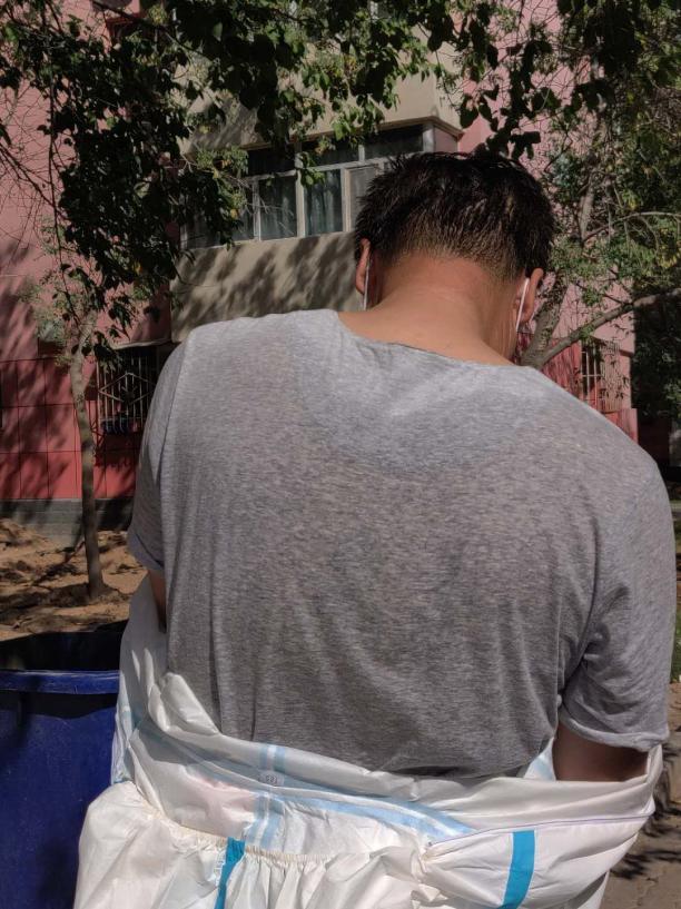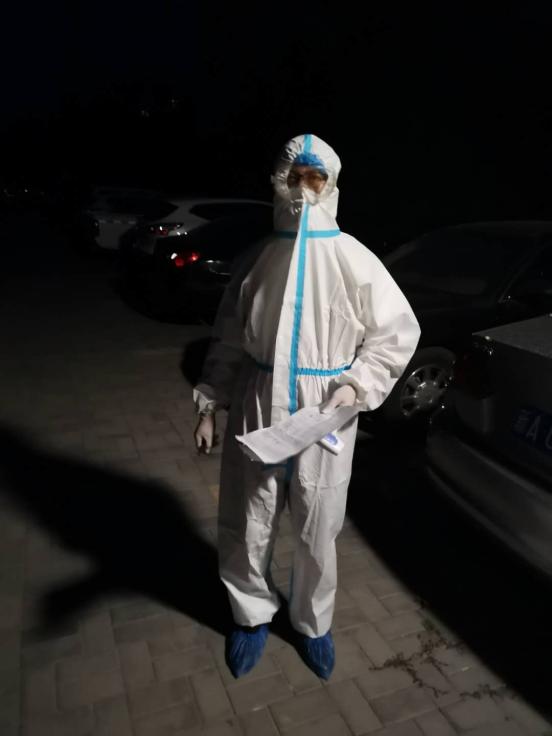 10點(diǎn)剛到,送志愿者的車已經(jīng)??吭跇菞濋T口,由于志愿者接觸人員較多,在入戶測(cè)溫前,首先要保證自己屬于健康人員范疇,才能為居民進(jìn)行體溫測(cè)量。每一位志愿者都嚴(yán)格按照防疫著裝標(biāo)準(zhǔn),穿好防護(hù)服,佩戴護(hù)目鏡、醫(yī)用口罩、醫(yī)用手套。