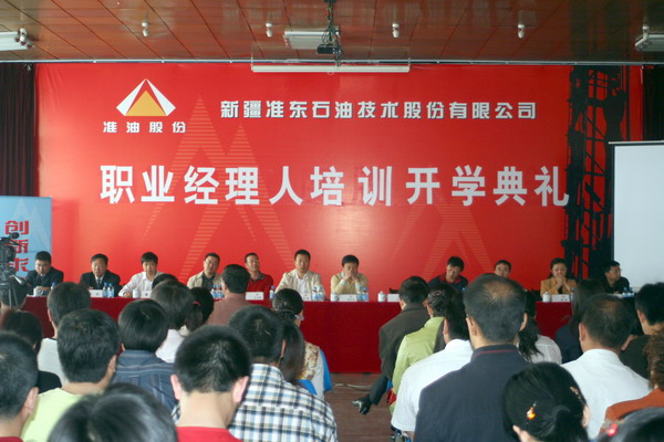 2008年5月10日在公司一樓會活動室,伴著整齊而又氣勢磅礴的“團(tuán)結(jié)就是力量”,新疆準(zhǔn)東石油技術(shù)股份有限公司職業(yè)經(jīng)理人培訓(xùn)開學(xué)典禮拉開了帷幕。