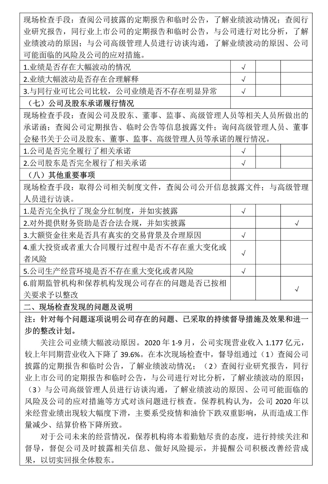 中原證券關于準油股份2020年度持續(xù)督導工作定期現(xiàn)場檢查報告