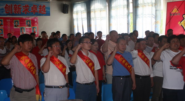 ??? 29日早上9:30,公司各單位員工排著整齊的隊(duì)伍,舉行升旗儀式,之后由公司黨委副書記、總經(jīng)理常文玖同志帶領(lǐng)到場(chǎng)的員工進(jìn)行宣誓。