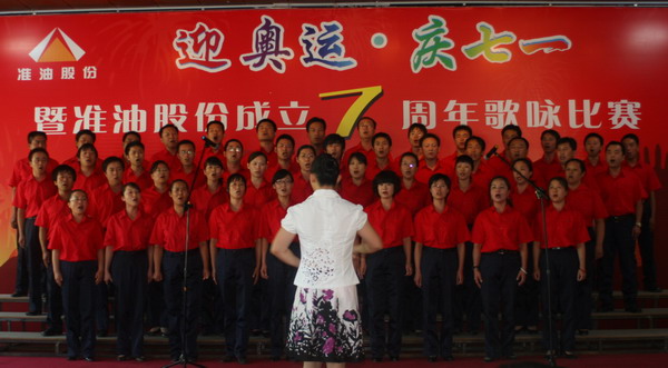 ??? 下午四點(diǎn),“迎奧運(yùn) 慶七一暨準(zhǔn)油股份成立七周年歌詠比賽”正式開始,公司共組成了六支隊(duì)伍,在場(chǎng)上一決雌雄。最后,石油技術(shù)事業(yè)部代表隊(duì)技?jí)喝盒郢@得了第一名的好成績(jī),由公司黨委書記、董事長(zhǎng)秦勇同志為其頒獎(jiǎng),公司工程建設(shè)事業(yè)部代表隊(duì)、機(jī)關(guān)代表隊(duì)分獲二、三名,其他隊(duì)伍獲得優(yōu)秀獎(jiǎng)。