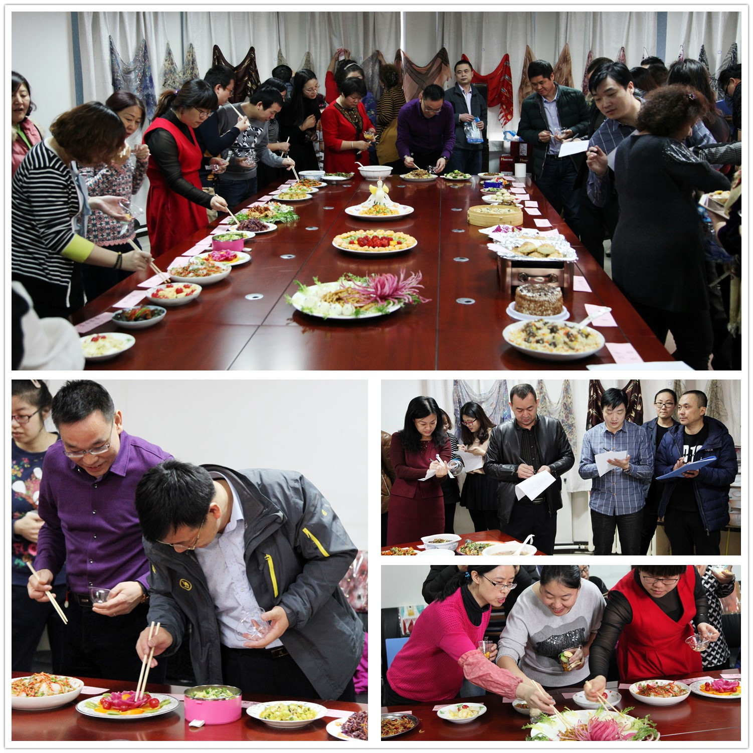 上午11時(shí)30分,公司第三會(huì)議室香味撲鼻,參加廚藝展示的美麗的"廚娘"們紛紛亮出四喜蒸餃、心中有數(shù)、糖醋魚條、奶油康斯、百花釀豆腐、麥穗魷魚卷、海米油菜、椒鹽蘑菇、焦燒變蛋、梅菜扣肉等豐盛營(yíng)養(yǎng)、色香味俱全的菜肴,以及黃面烤肉、碎肉抓飯、私房水煎包、棗糕、八寶飯等主食面點(diǎn),共計(jì)達(dá)35道菜品。